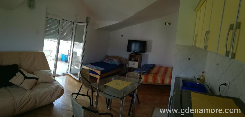 Stan je potuno opremljen, jkomplet kuhinja, kupatilo sa ves masinom,Tv, Wifi.